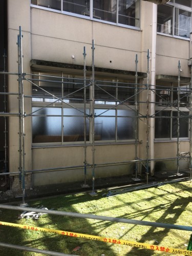 こんにちは(*^^)v 今日の突然の雨に! 何の音だ!!!! とビックリしました\(◎o◎)/! 今日の写真は・・・ とある学校です!!!! こんな隙間にも足場を組むんですね\(◎o◎)/! 少しやりにくそうな所ですが(~_~;) ちゃんと考えて組んでいくんでしょうねぇ~!(^^)! (独り言) 組み立てるときに上の方が当たりそうですけど・・・ 当たらないように出来るもんなんですね(・。・; 立ち入り禁止!!! 子供たちが入らないように囲いもしてますね(^_^) (当たり前かっ(^_^;) ) みなさん突然の雨などに気をつけてください(^^) 視界も悪くなってますしね(ーー;) 今日もお付き合いありがとうございました(*^。^*) …